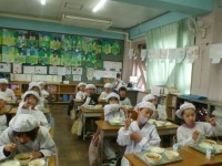 2組の様子です!今日の小おかず「焼きシューマイ」の「シューマイ」を漢字で書くと?