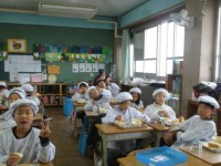 2組の様子です!今日の小おかずのドレッシング「しょうゆドレッシング」の「しょうゆ...