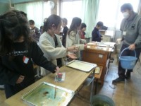 3年3組が図工の学習で絵の具を使って何やら模様を付けています!何ができるのかな?