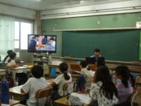 5年1組が明日からの宿泊学習の宿舎でのルールの映像を見ています!明日からの生活イ...