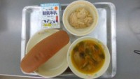 今日の給食は、ぎゅうにゅう、コッペパン、