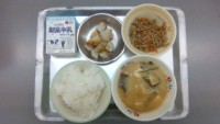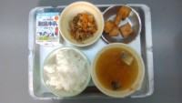 今日の給食は、ぎゅうにゅう、ごはん、みそしる、