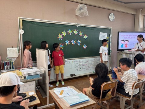 今週の朝の会は8・9月のお誕生日会をしました。歌を歌ったり、ケーキと写真を一緒に撮ったりして、みんなでお祝いをしました。そのあとは、私は誰でしょうクイズをし、クイズを出すほうも答えるほうもとっても上手でした。またみんなでやりましょう!