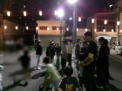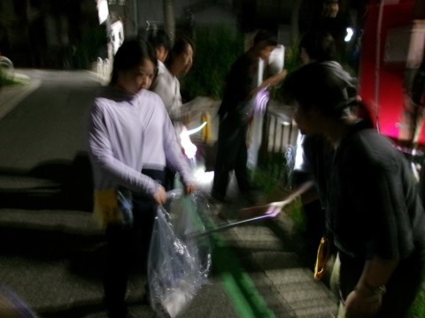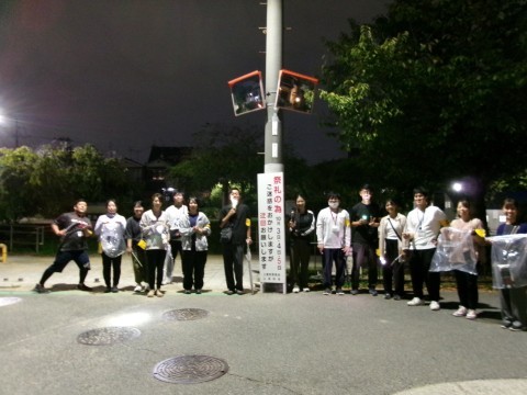 今日は鳳祭の夜警として,学校から右グループと左グループに分かれてゴミ拾いをしながら上鶏鳴地車の詰所まで行きました。