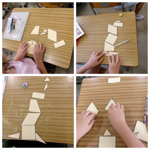 算数はかたちづくりをしていました。「家を作った」「6階建ての家」「ぐらぐらロケット!」「展望台のエレベーター」とそれぞれ作ったものを教えてくれました。