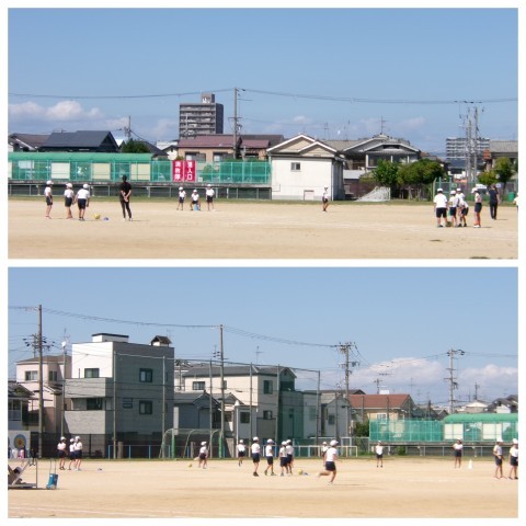 体育はキックベースボールです。守備の位置をみて蹴る方向や強さを変えるなど作戦を考えていました。
