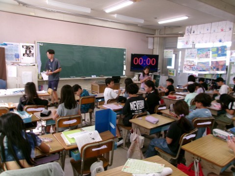 となりのクラスでは算数の学習前に夏休みの宿題を提出した作品の参加賞をもらっていました。