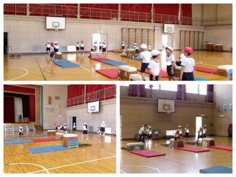 体育はとび箱です。課題別に分かれて練習をしていました。