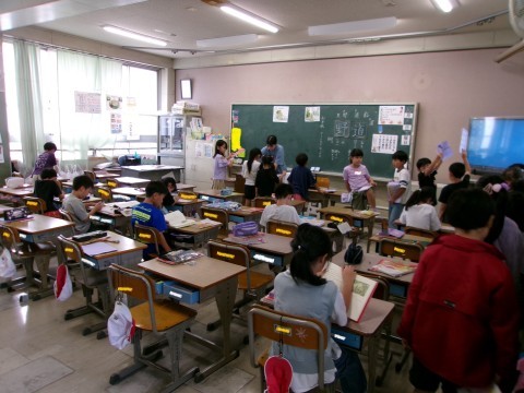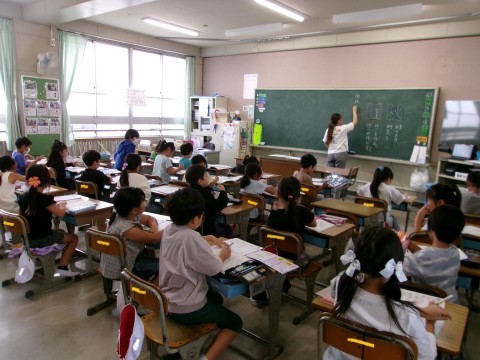 国語は新出漢字をしていました。書けたら漢字ドリルを先生に確認してもらっていました。