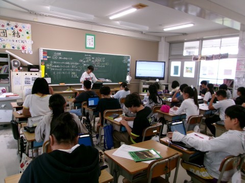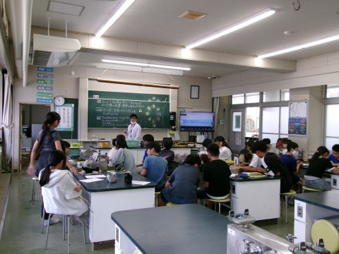 理科は月の動きです。光源を使って実験した結果をもとに月のかたちが変わる理由を考察していました。