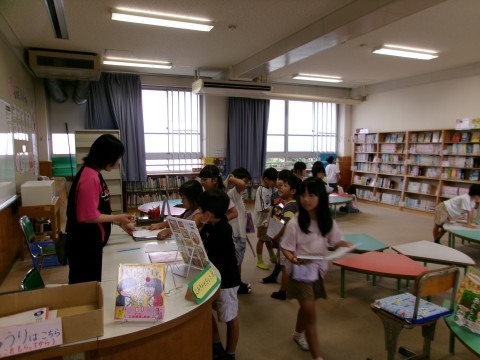 国語は図書とカタカナの学習でした。図書の時間は,自分の借りたい本を見つけていました。