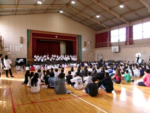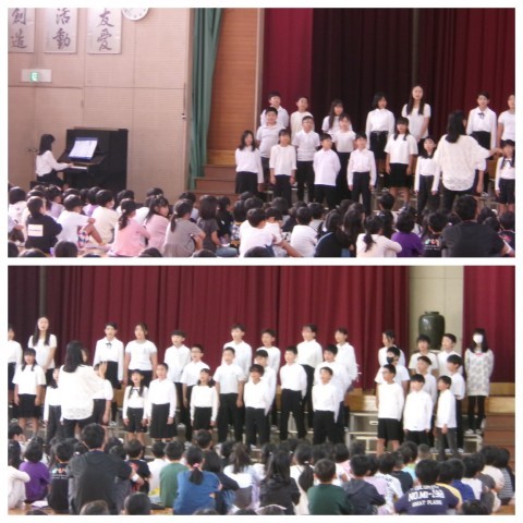 今日は5年生が参加する連合音楽会の壮行会が行われました。