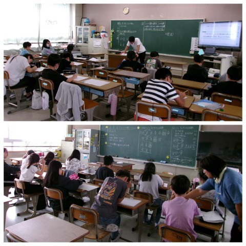 算数は分数の大きさ比べです。通分をして比べるところまではわかっているのですが,3つを通分するのに苦戦している子もいました。