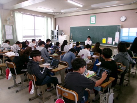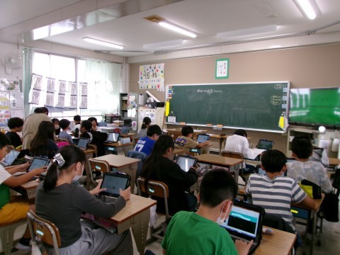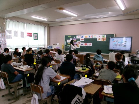 外国語は「I want to go to~」の学習です。この国にこんな名物・名所があるよねという確認をしていました。この後は自分で紹介したい国を決めて英語で紹介していくそうです。