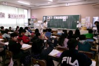 国語は図書です。先生に読み聞かせをしてもらっていました。回文がたくさんでてくるお話でしたね。