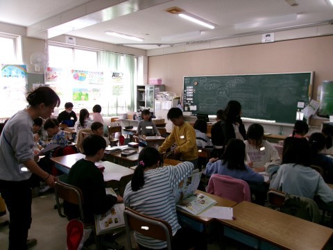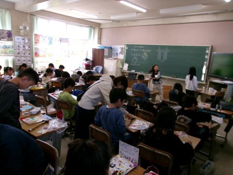 国語は「すがたをかえる大豆」の学習を生かして,ほかの食材について本を使って調べていました。