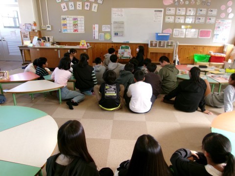 国語は図書です。今日は子どもたちが自主的に読み聞かせを担当していました。聴きやすくとても上手な読み聞かせでした。