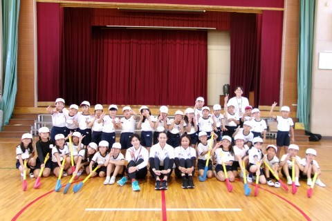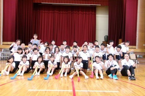 トップアスリートふれあい事業で大阪ホッケー協会より笹岡さん,新井さん,寺井さんにお越しいただきホッケーを体験させていただきました。