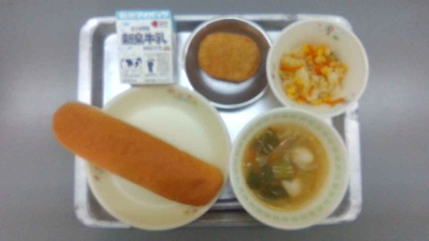 今日の給食は、ぎゅうにゅう、コッペパン、
