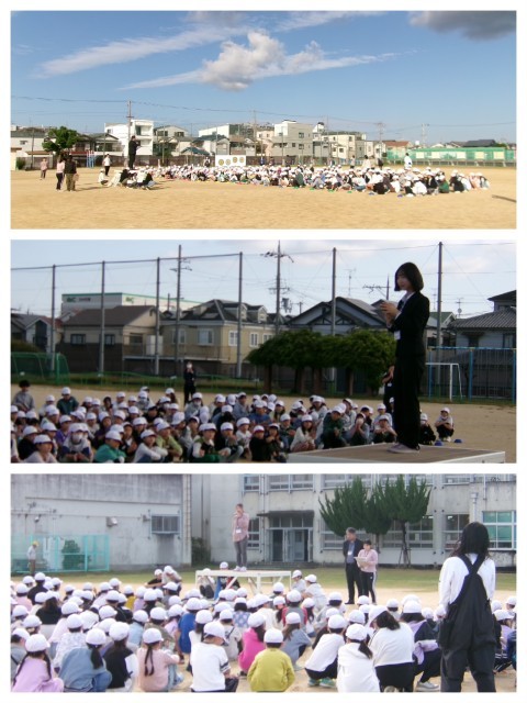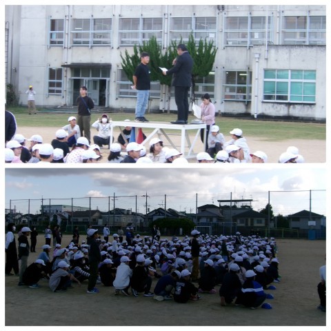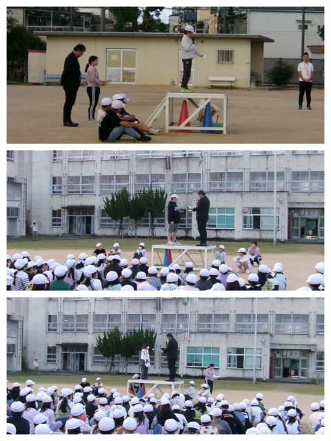 今日の全校朝会は校長先生からのお話,養護教諭実習生のあいさつ,生徒指導の先生からのお話がありました。