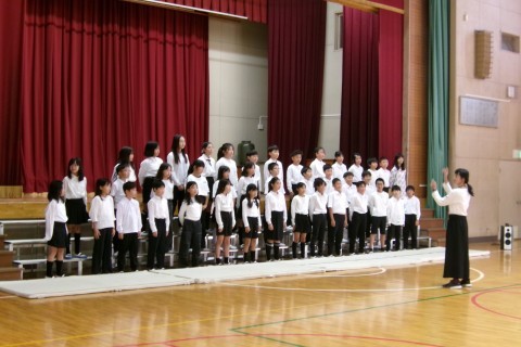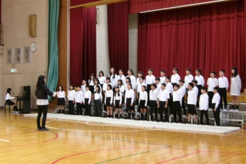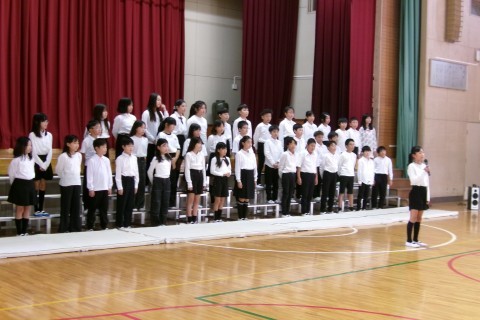 音楽は発声練習や音合わせの練習風景を見ていただいたあと,連合音楽会で披露する曲を発表しました。水曜日が本番です。頑張ってくださいね!