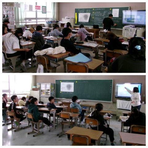 算数はおよその面積の求め方です。明治神宮球場を扇形や台形に見立てて求められないかを考えていました。