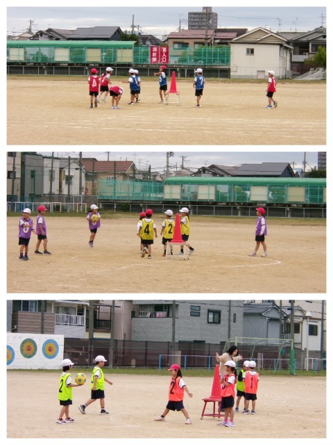 体育はまとあてゲームです。ボールの投げ方もだんだんと上手になってきましたね。