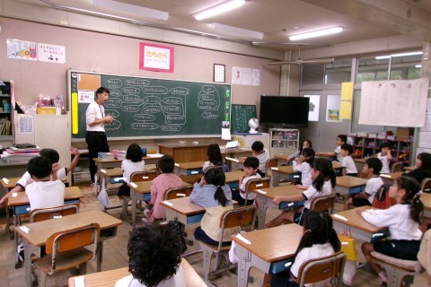 道徳は体育のまとあてゲームでの反省からみんなが仲良くする方法を話し合っていました。