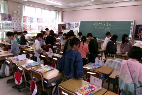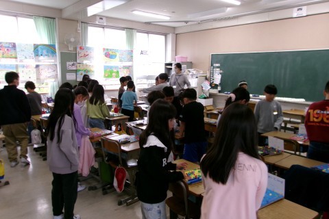 2年生をお招きしたあと,クラスで交換して遊んでいました。友達の作品の工夫を見つけていました。