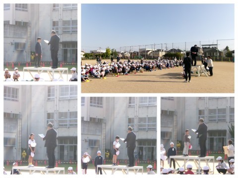 今日の全校朝会は校長先生のお話,表彰,生徒指導の先生のお話でした。