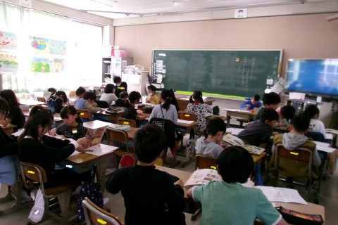 国語はすがたをかえる食物の清書をしていました。教科書で習ったことをいかして,わかりやすくまとめてくださいね。