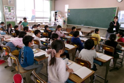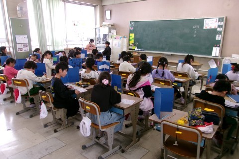 算数は3の段の九九が聴こえてきました。列ごとに交代で言っていました。まだ後半になると合っているのか不安そうな子もいますね。これからしっかり覚えていってくださいね。