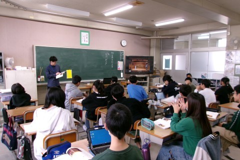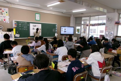 国語は「柿山伏」の学習です。動画で狂言の舞台を確認しながら古典文学の世界を楽しんでいました。