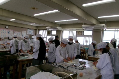 家庭科は調理実習です。「ジャーマンポテト」を作りました。手際よくでき,おいしくできたようです。