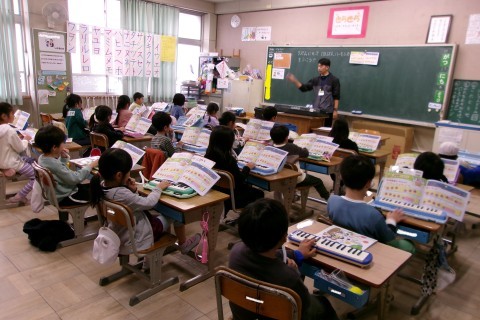 音楽は鍵盤ハーモニカをしていました。今日は「なかよし」を練習していました。