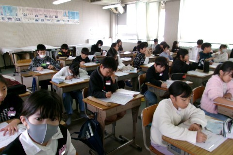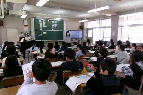 音楽は「とんび」の学習です。鳴き声の歌詞の部分をどんな強さで歌うと旋律に合うかを考えていました。