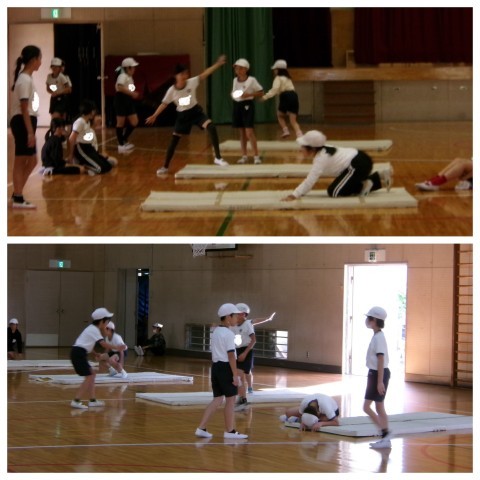 体育はマット運動です。見に行った時は側転を練習していました。コツをつかんでできるように頑張ってくださいね。
