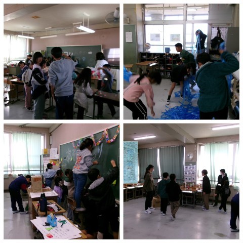 教室のかざりつけや最終リハーサルなど準備をがんばっていました。