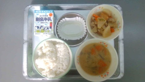 今日の給食は、ごはん、ぎゅうにゅう、にくだいこん、