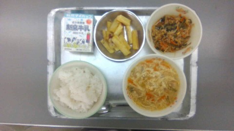 さつまスティック、たまごスープです。