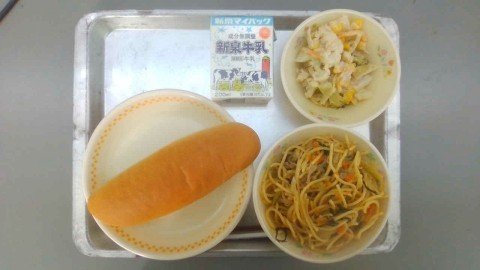 今日の給食は、ミニコッペパン、ぎゅうにゅう、