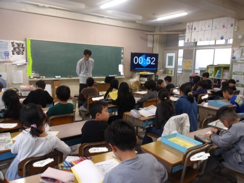 算数は確認プリントをしていました。できた人から先生に〇をつけてもらっていました。