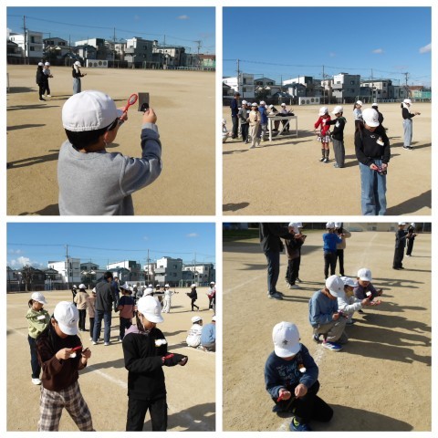 理科は光のすすみかたの学習です。虫眼鏡で光を集めていました。集中して手に気を付けて実験していました。