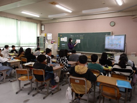 外国語は「Where is ~?」の学習です。「turn left(right)」を使って上手に説明してくださいね。