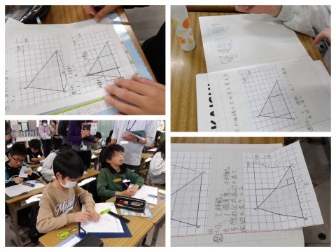 今日は5年の研究授業でした。三角形の面積の学習です。前に習ったことを生かして見通しを発表し,友達の意見を参考にしながら自分の考えを書いていました。