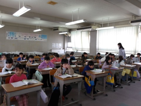 国語はテスト返しをしていました。何点だったかどきどきですね。