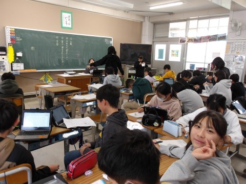 家庭科は栄養バランスのとれたメニューを調べていました。冬休みも好きなものばかりでなく,バランスよく食べてくださいね。