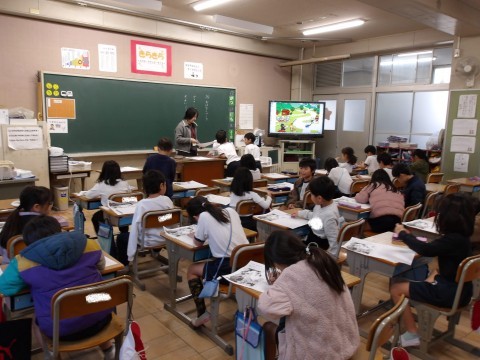 国語はおはなしづくりをしていました。一枚の絵を見て想像をふくらませます。好きな本を参考にして作ってみてくださいね。