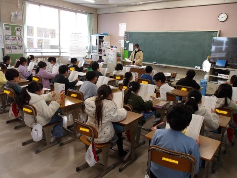 国語は「みきのたからもの」の学習です。大きな声で音読している声が廊下まで聞こえてきました。このおはなし,楽しいですよね。自分がおもしろいな・楽しいなと思ったところを友達に紹介しましょう。