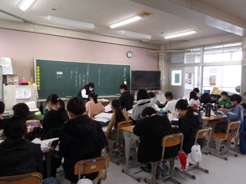 国語はテスト返しをしていました。間違えたところを確認して冬休みの自主学習で取り組むのもいいですね。